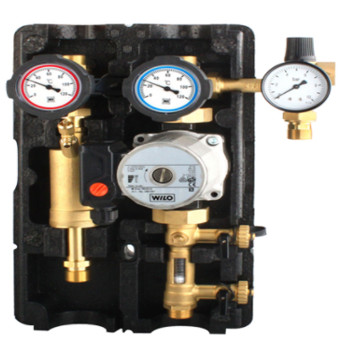 Solar pumping units 2 ways are suitable for integration in solar thermal systems with forced circulation. Used to transport fluid from solar panels to heat exchanger users.