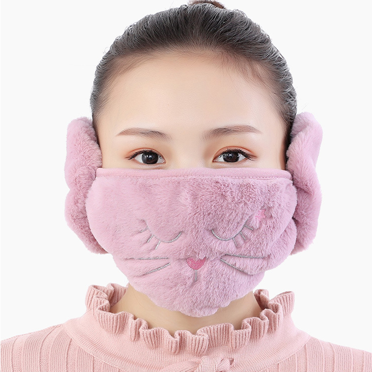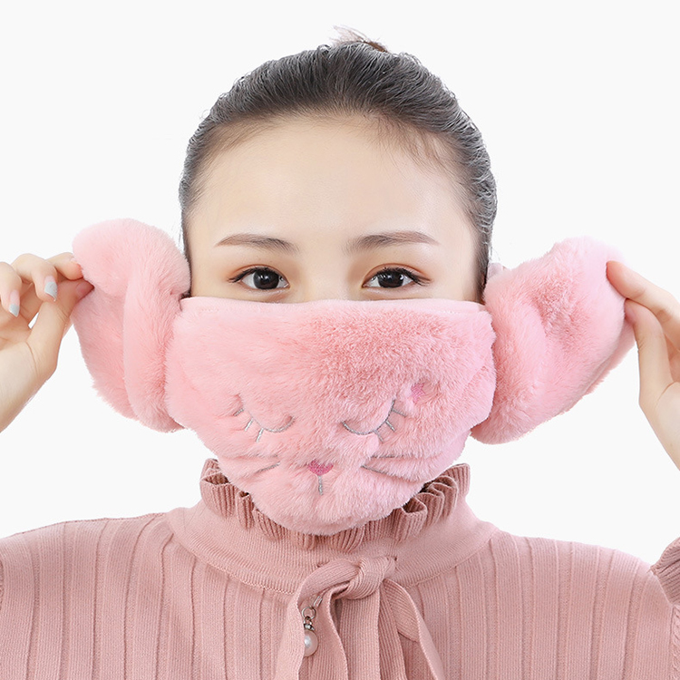 2 in 1 Warm Earmuffs Cartoon Cute Mouth-muffs Ear-cap Autumn Winter Thicken Plush Outdoor Riding Keep Warm Earflap