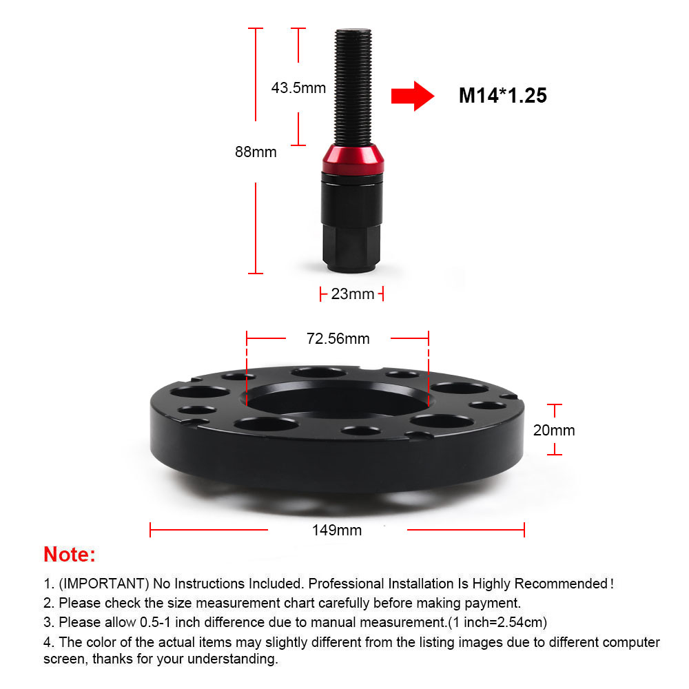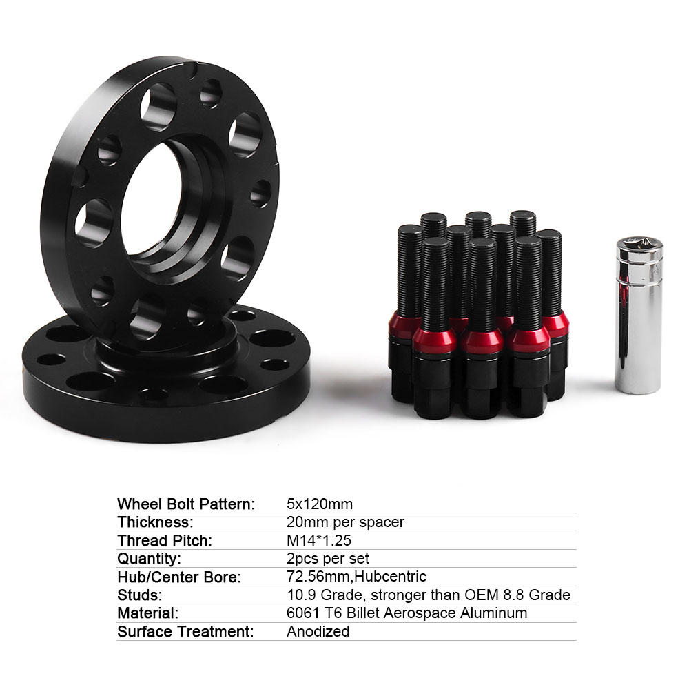 2 pack 20mm 5x120mm hub spacer 72.56mm pitch M12x1.5 with lug bolts for BMW E36 E82 E88