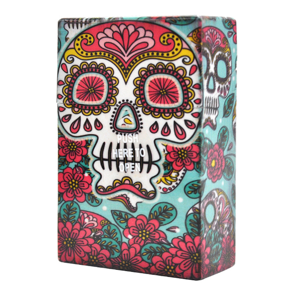 20 Pack Tobacco Waterproof Custom Colored Transparent Light Up Dark Skull Acrylic Plastic Flip Top Cigarette Cases