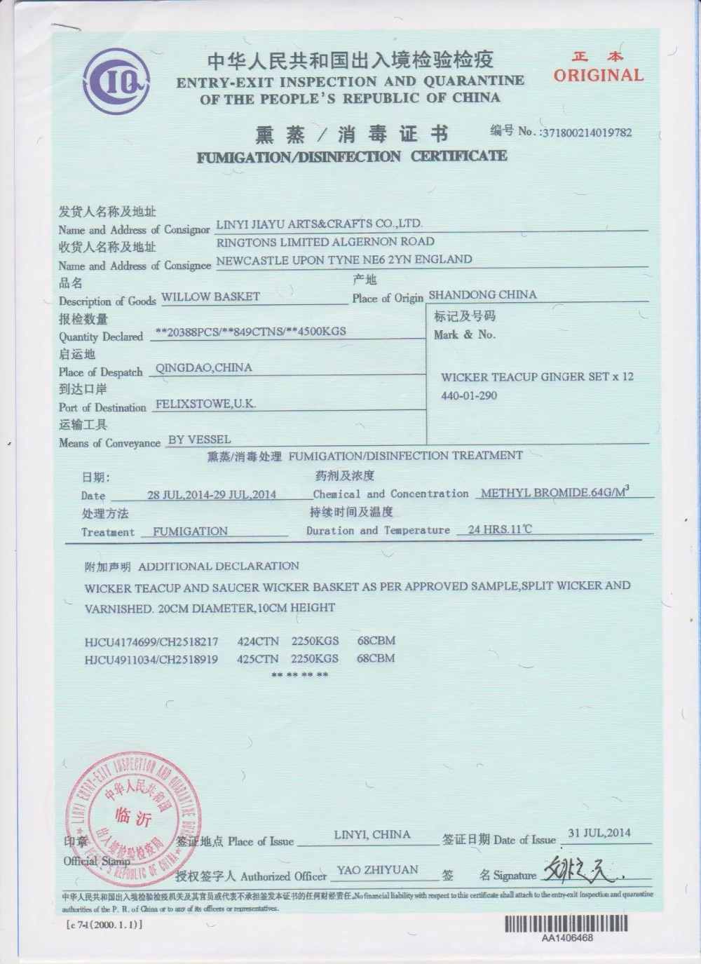 *Wholesale Large Empty Cheap Wicker Baskets For Picnic With Lids are passed Hygienic Certificate, Certificate of Origin and Fumigation/Sterilization Certificate.