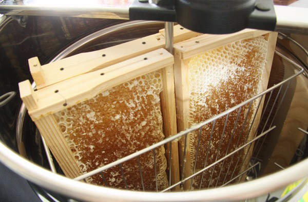Using this method, the wax comb remains intact within the frame and can be used again by the bees