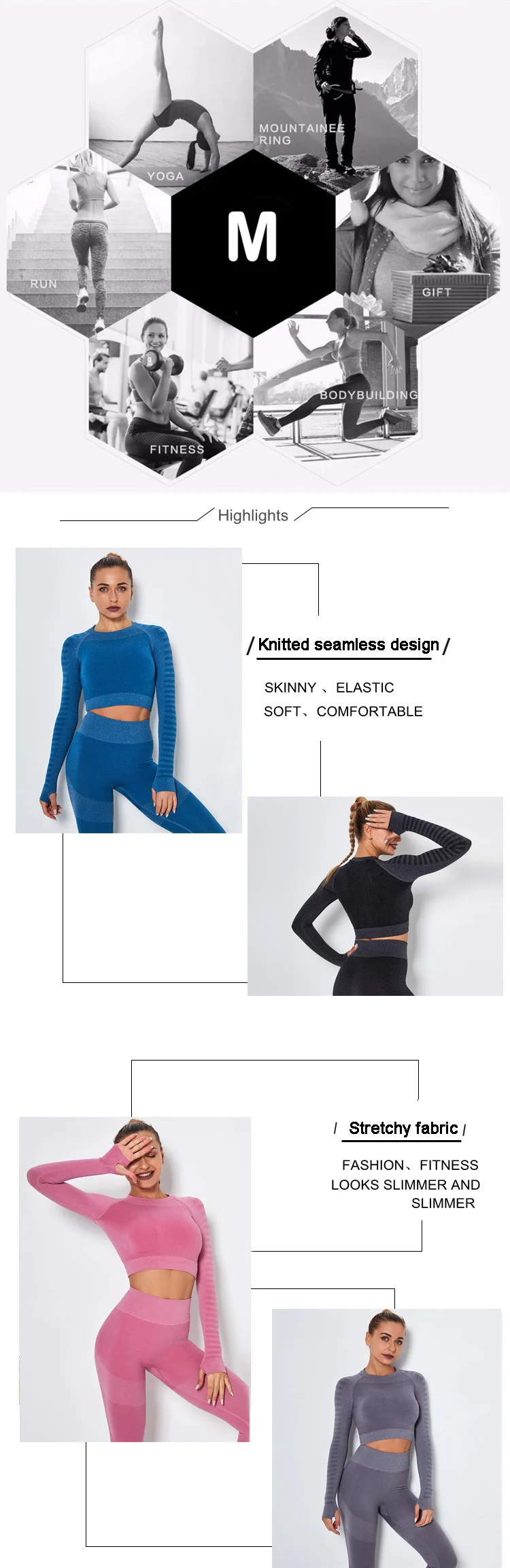 2020 Fitness Yoga Wear Seamless Crop Top Long Sleeves Womens Workout Shirt