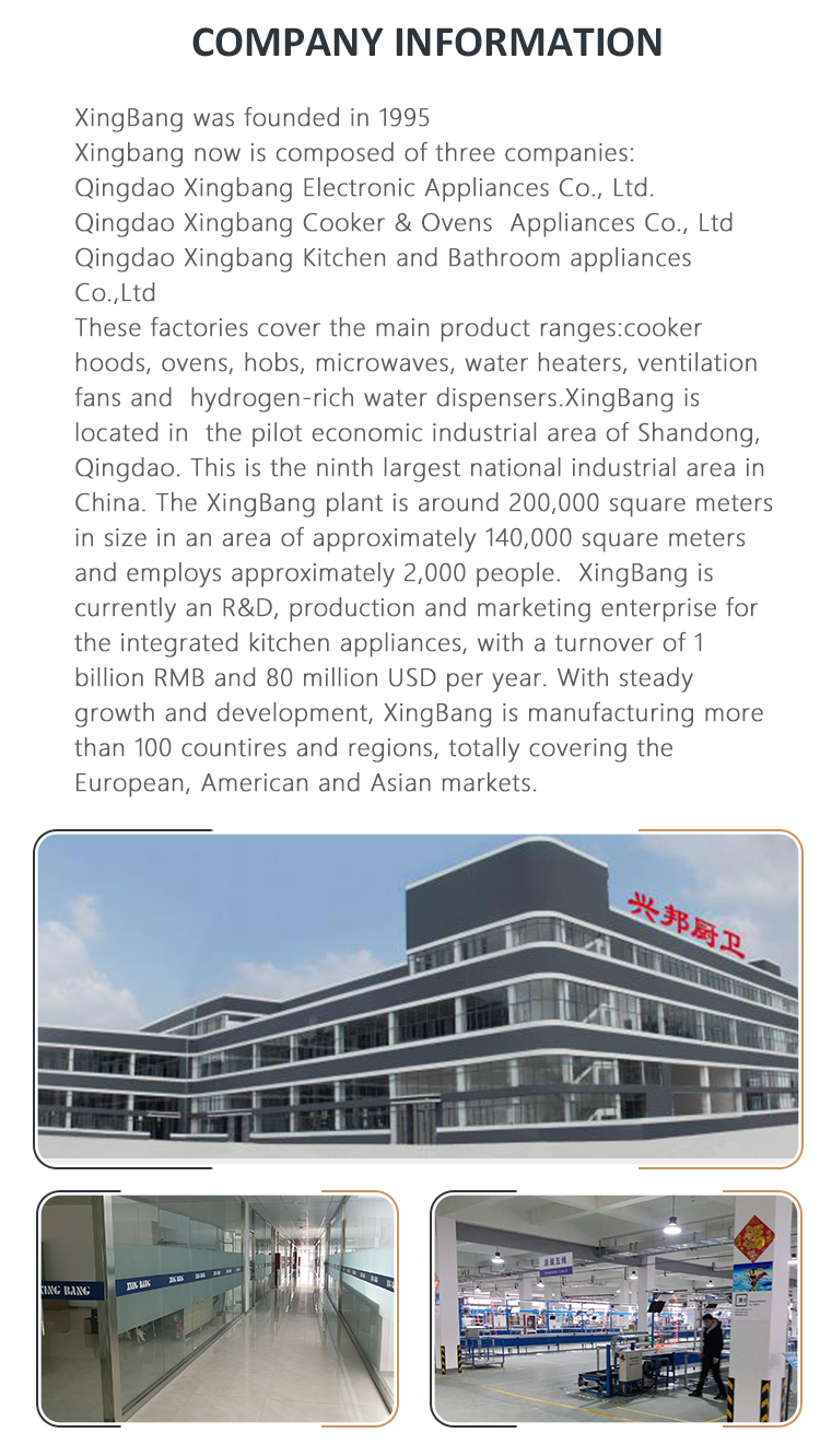 Xingbang Group is a world-class OEM enterprise, relying on the location and manufacturing capacity of Qingdao Port to provide kitchen appliances to the world. Innovation is the soul of Xingbang's development. Xingbang pays close attention to global market trends and promotes technology industrialization to develop technology. We maintain long-term cooperation with technical experts and specialized laboratories in Europe, America, Japan and Korea. With the steady growth and development, the products manufactured by Xingbang are distributed in more than 100 countries and regions, completely covering the European, American and Asian markets. We have obtained ISO 9001, ISO 14001 and SA 8000 and we also have CE, CB, SAA, UL and some other regional product certificates. We are a trusted partner and professional OEM, try to contact us and change your life.