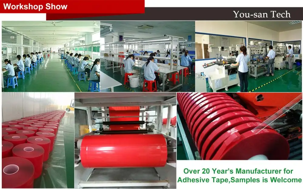 Shenzhen You-San Technology Co.,Limited. was established in 1998, being one of the top adhesive products enterprises in China, YOU-SAN is specialized in manufacturing industrial adhesive tapes and double sided adhesive tapes, the products are hot selling in China and meanwhile exporting to oversea clients from five continents with years' continuous development.