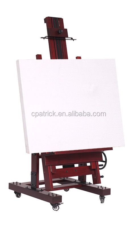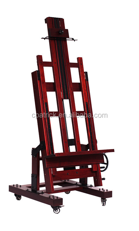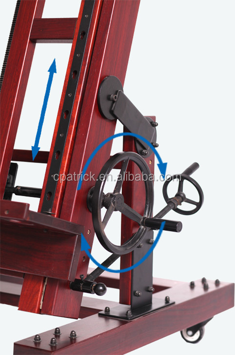 Top quality Professional Master Large hand-operated nut brown double rocker beech wooden easel with four wheels