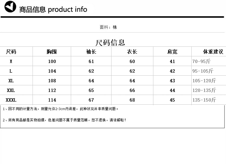 | size: | S-3XL | Filler: | cotton |