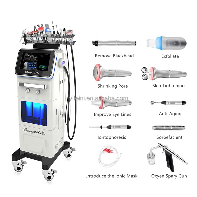 2021 High Quality 10 in 1 Water Peeling Hydrotherapy Oxygen Facial Beauty Oxygen Injection Microcrystal Peeling Machine