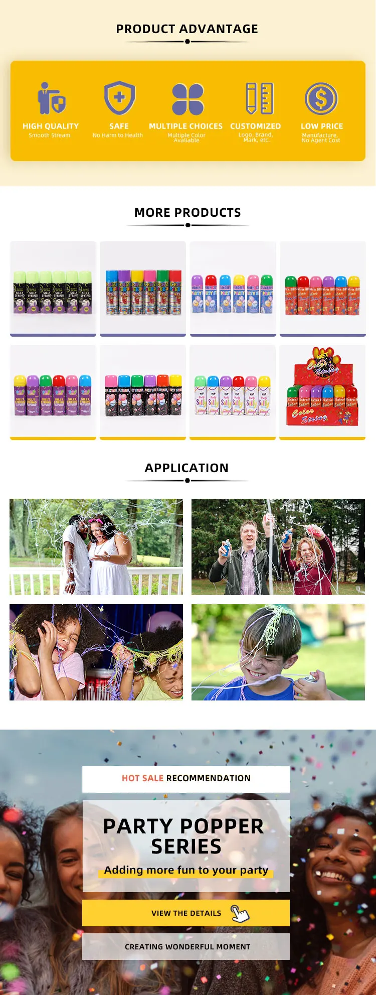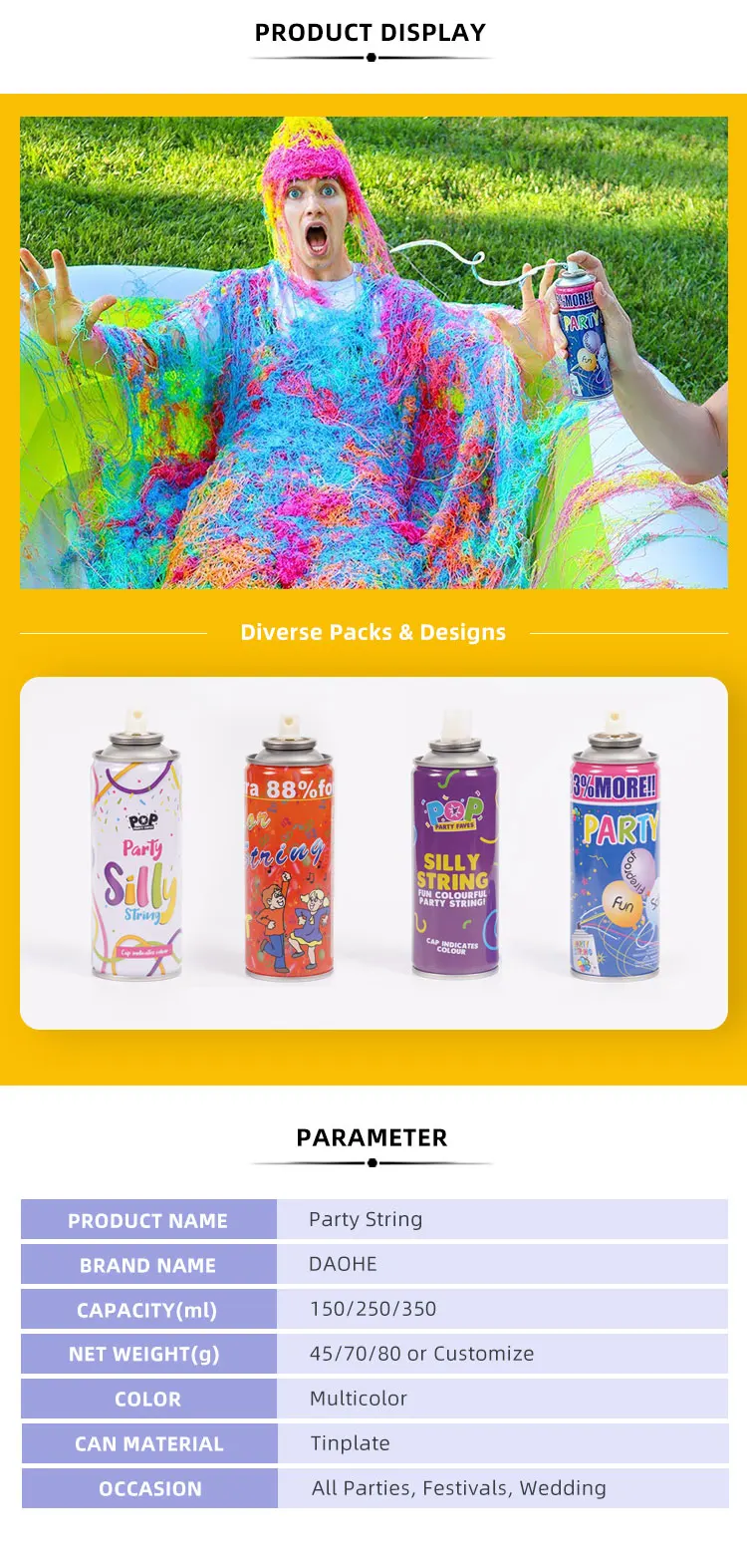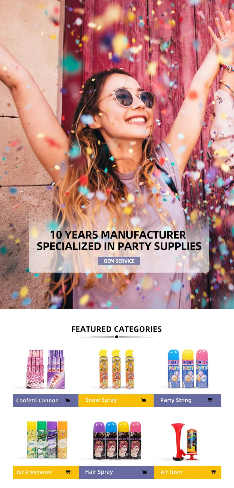| Shape: | Cylinder; | Product Name: | Party Silly String; |