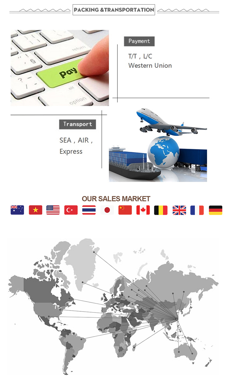 Pay 1.30% deposit and 70% balance before shipment 2. L/C at sight |