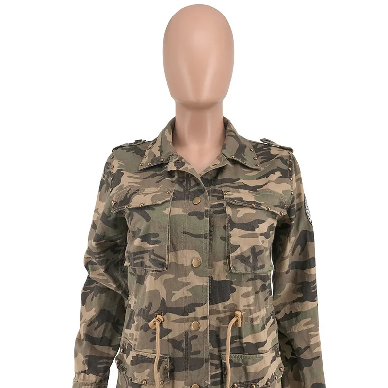 2021 New Rivet Badge Women's Plus Size Camouflage Jackets