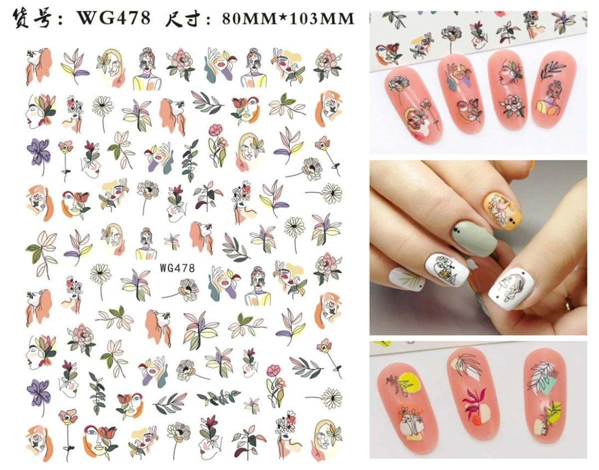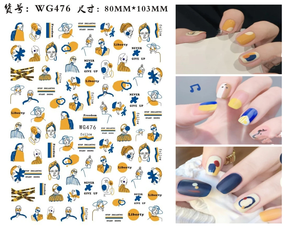 2021 Newest WG626-718 Size 8*10cm 3D adhesive Nail Stickers Decals Halloween Wholesale Supplies Wraps Salon Nail Art Decoration