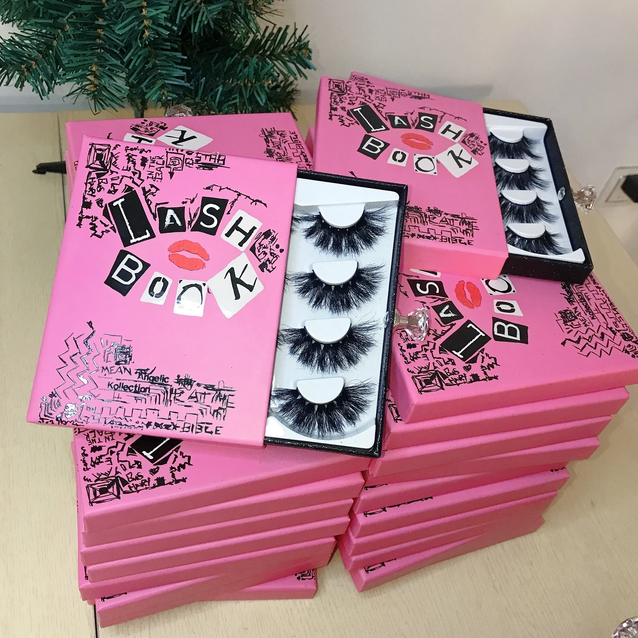 2021 new arrivals 4pairs mink lash box book packaging case Full Strip fluffy vegan 25mm 3D eye lashes wholesale vendor eyelashes