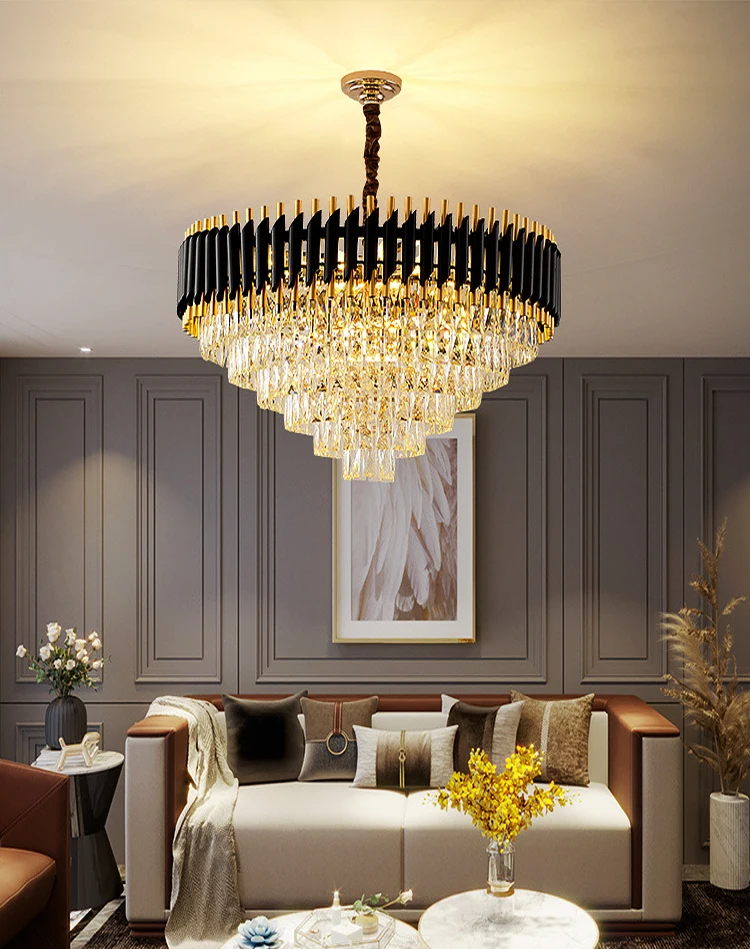 2021 round indoor luxury pendant light black gold LED hanging lights home nordic modern k9 crystal chandelier