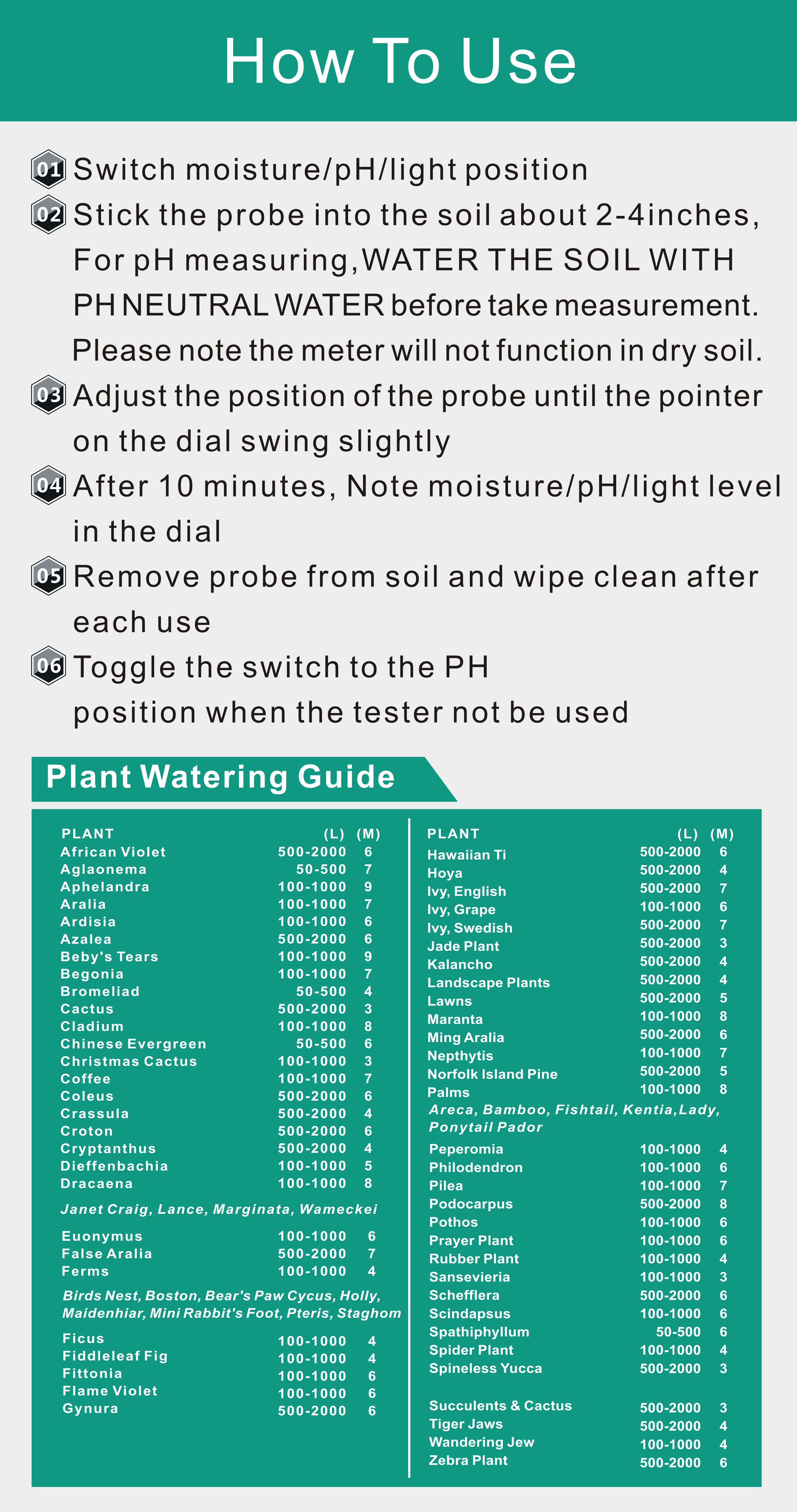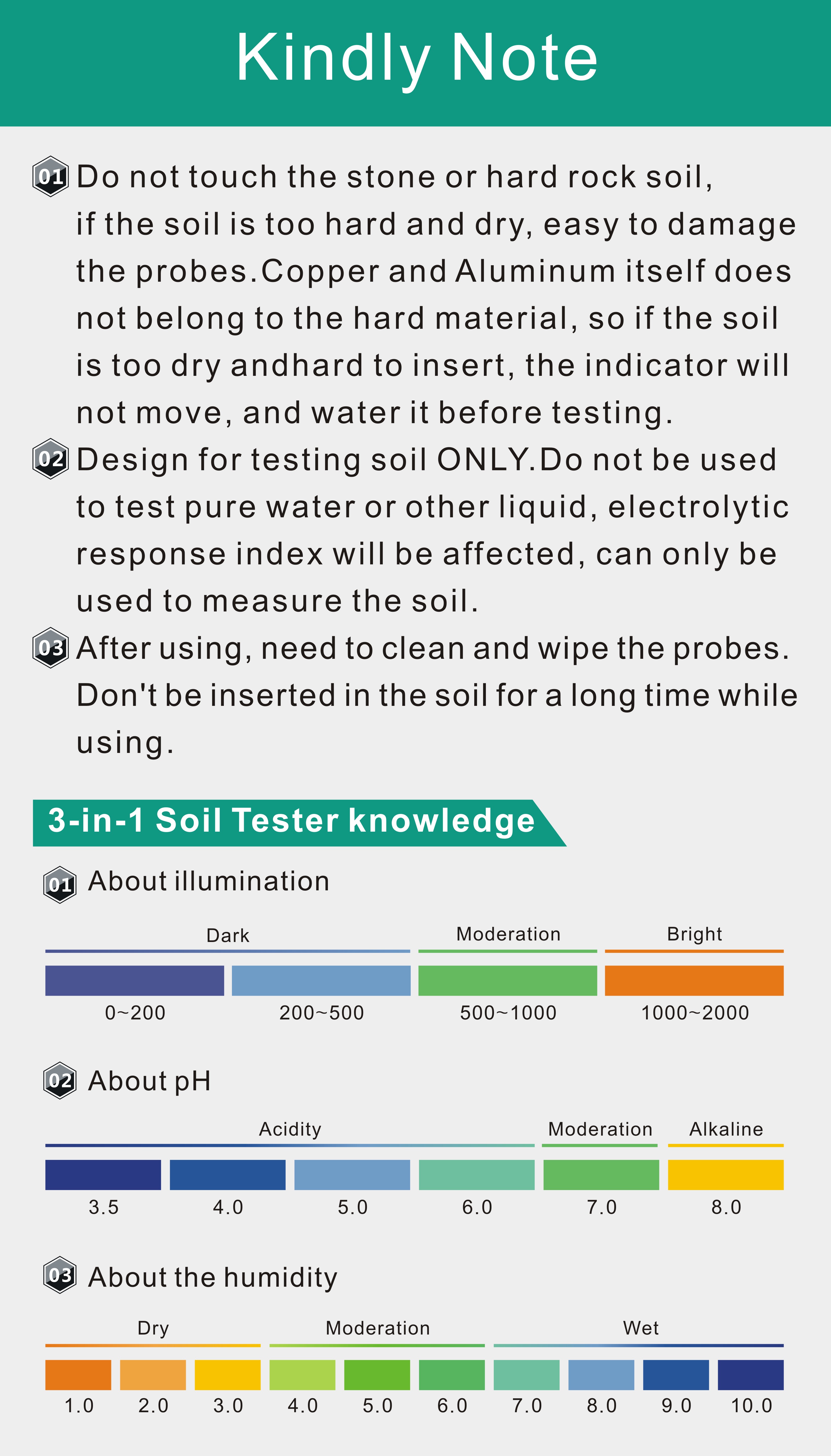 Wipe and clean the probe after each use If the soil is too dry, the pointer will not move or wobble.