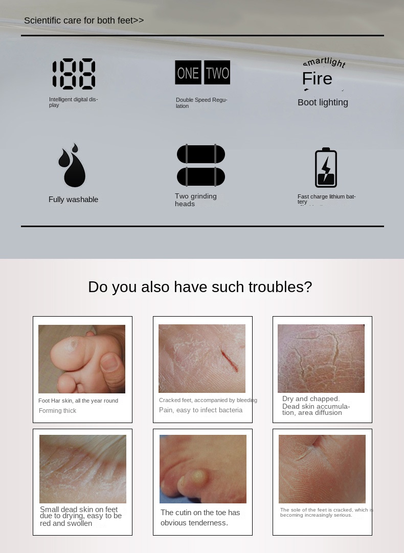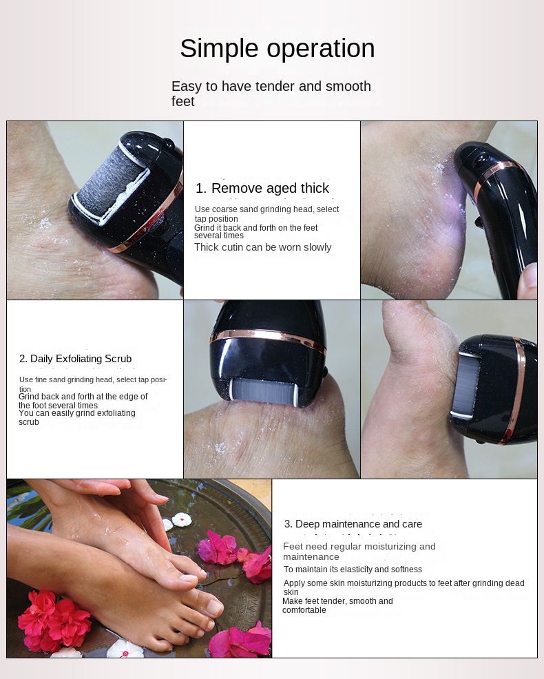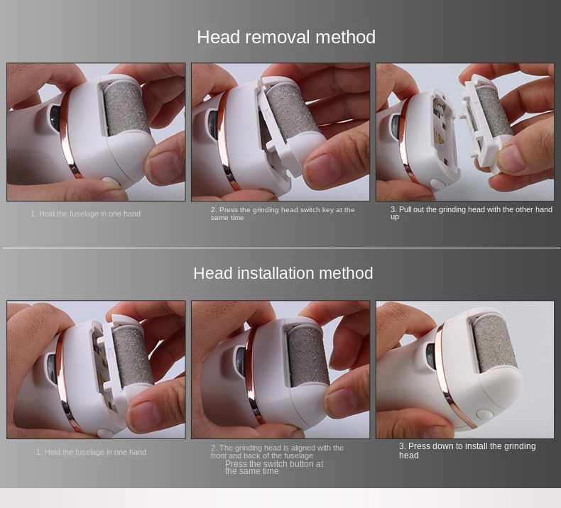 3. Powerful, equipped with two kinds of grinding heads, which can effectively remove dead skin and calluses.
