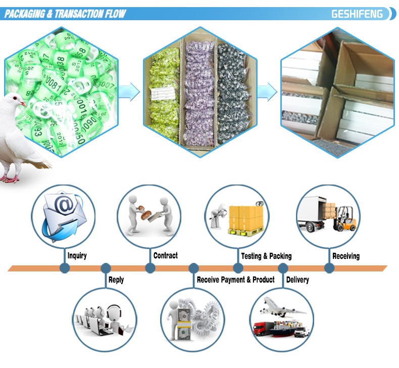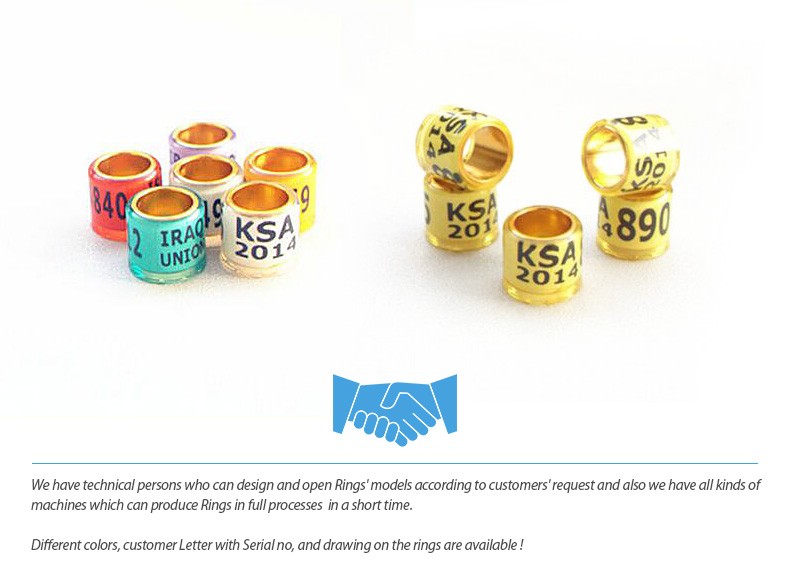 We manufacture a wide range of custom printed dove rings, bird rings and doves, exporting bird accessories to Belgium, Netherlands, Germany, France, USA, Japan, Egypt and other countries.