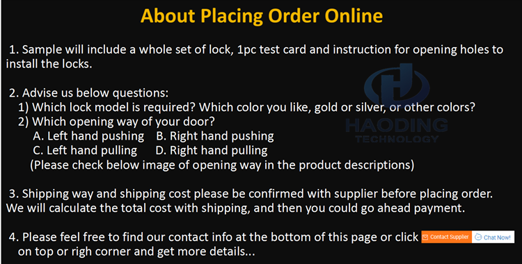 | Packaging Details: | Hotel door lock outer box size: L74* W38* H32(cm), 10pcs/ctn Gross weight: 30KG | product name: | hotel door lock |