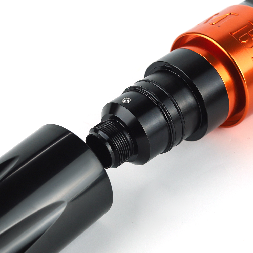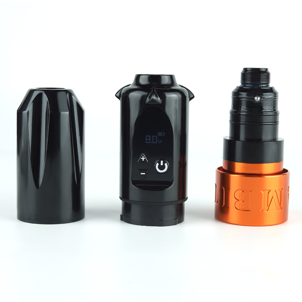 The device is a tattoo pen with a built-in lithium battery, which can be used directly with a needle without a foot pedal and hook. It consists of two parts: 1. The upper part of the lithium battery power supply 2. The lower part of the tattoo pen; The middle part can be unscrewed to replace the upper part of the lithium battery, or it can be used with an RCA adapter. The specific functions are as follows: