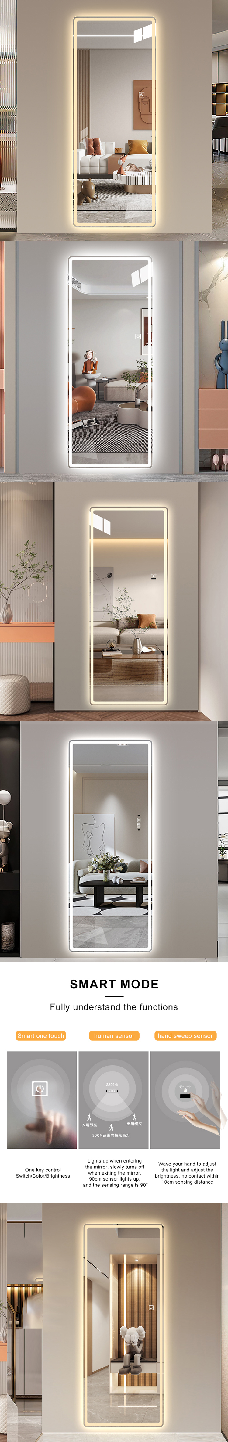 2023 New Luxury Rectangular Smart Touch Switch Floor Mirror Selfie Mirror Photo Wall Mounted Camera Kiosk Housing