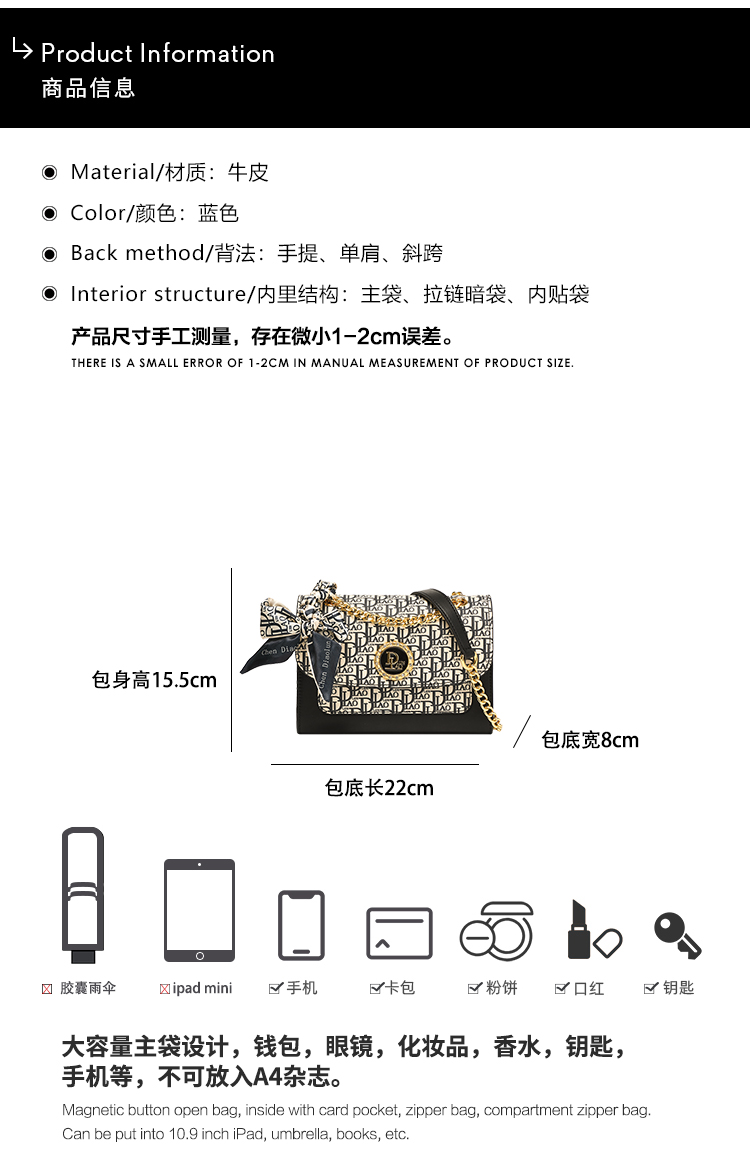 | Dimensions (L*W*H): | 22*8*15.5cm | Main ingredients: | PU leather |