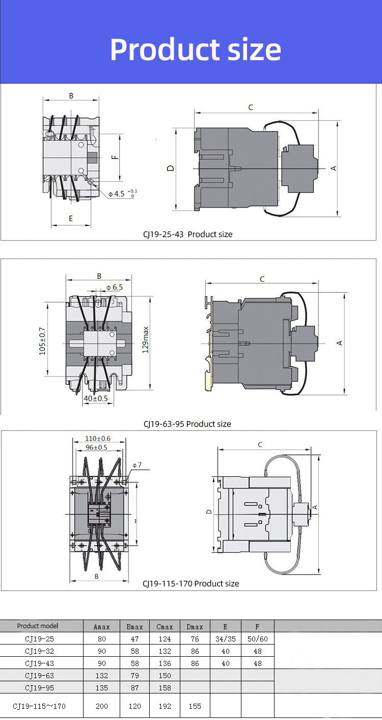 | Number of poles: | 3 | Main circuit rated current: | 25A 32A 43A 63A 80A 95A |
