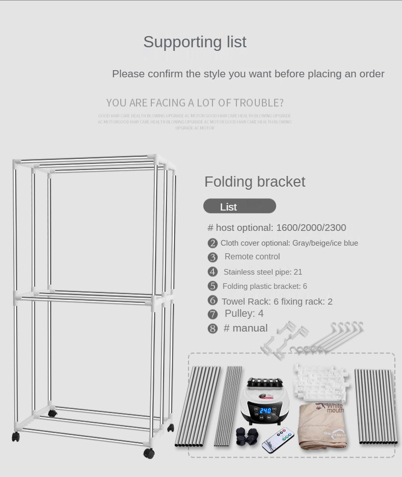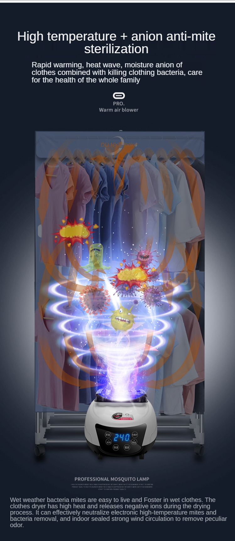 2300W Foldable Drying Rack Negative Ion Clothes Dryer Digital Automatic Timer Portable Mini Machine Electric Clothes Dryer