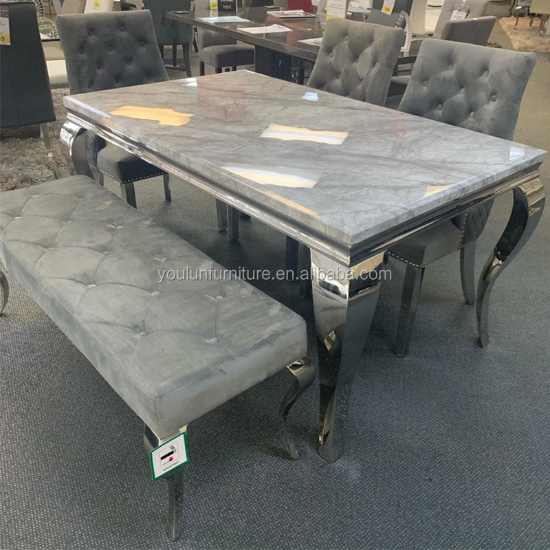 240cm 180cm Arianna Grey Rectangle Luxury Real Natural Marble Top Dining Table Sets