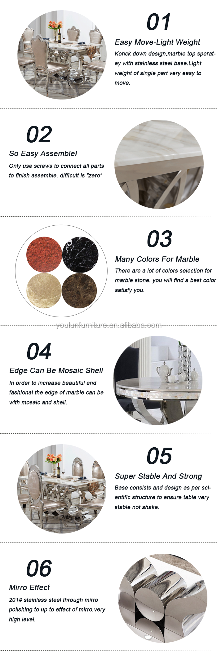 | Product name: | marble top dining table set; | Port: | Foshan/Shenzhen; |