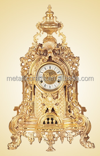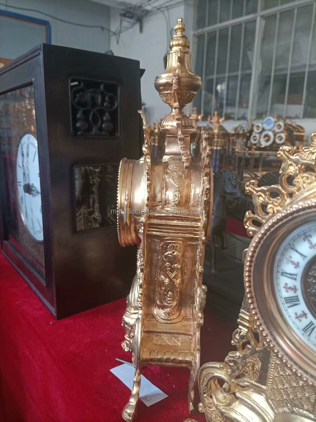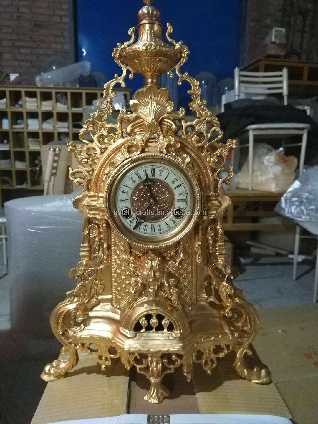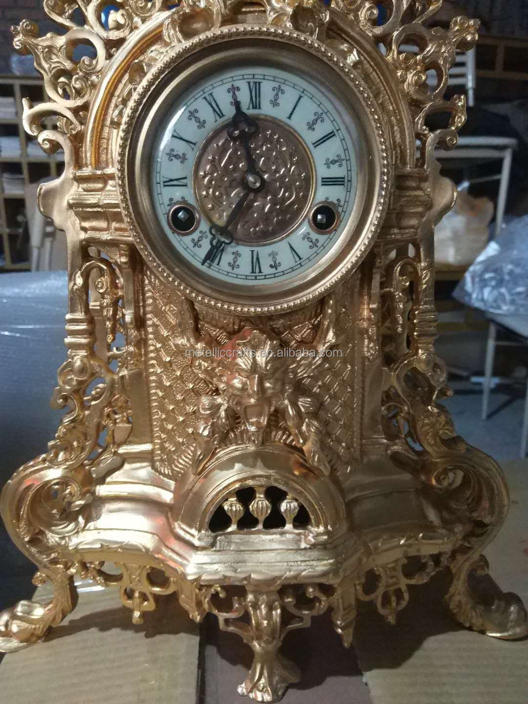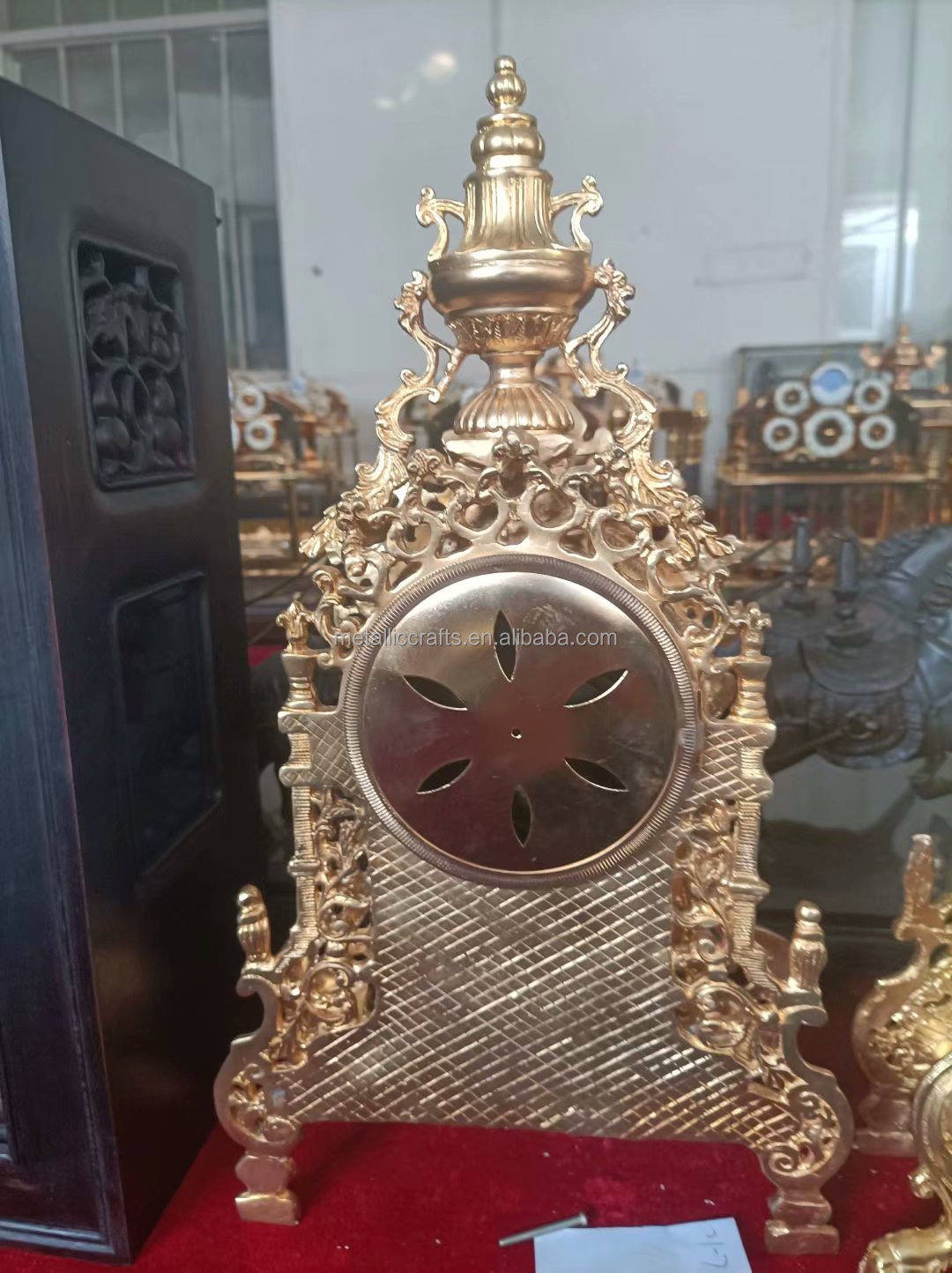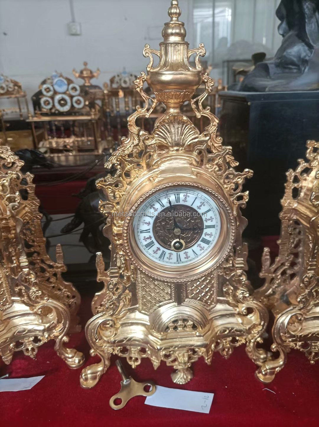 (24K Gilt) Antique Classical Cast Brass Mechanical Movement Vintage Three Angles Sitting on the Table Clock