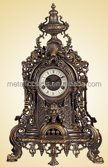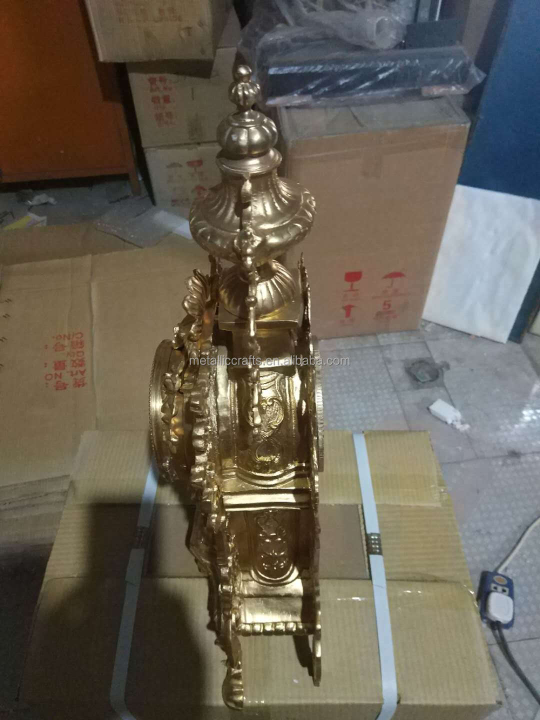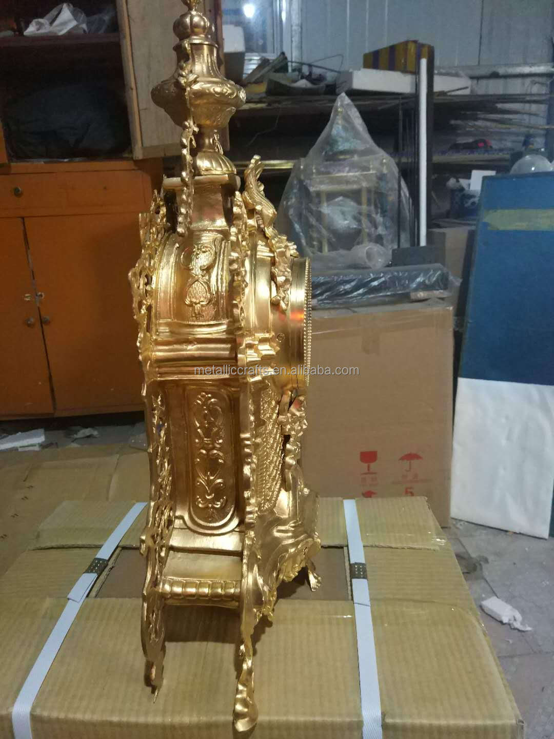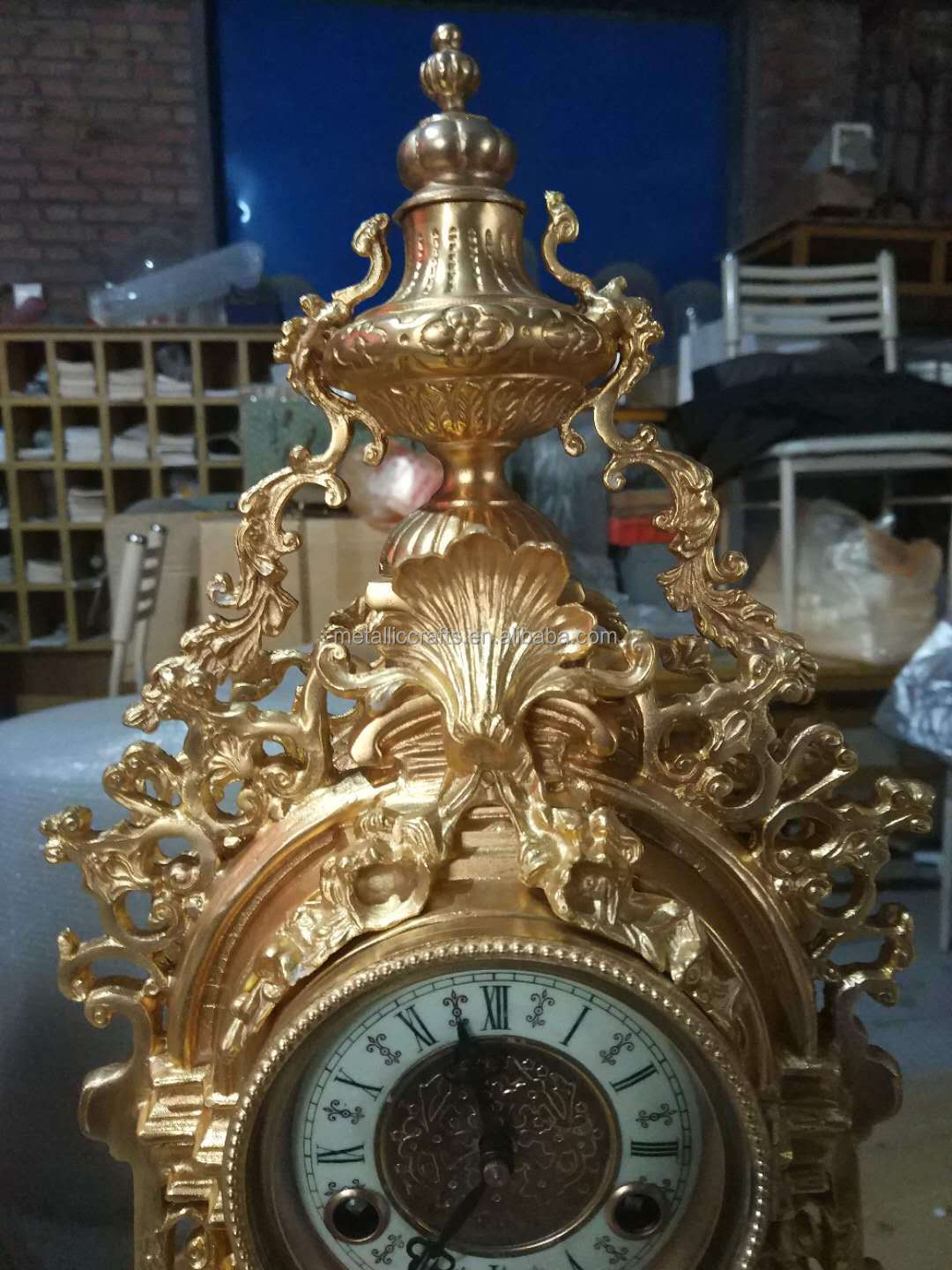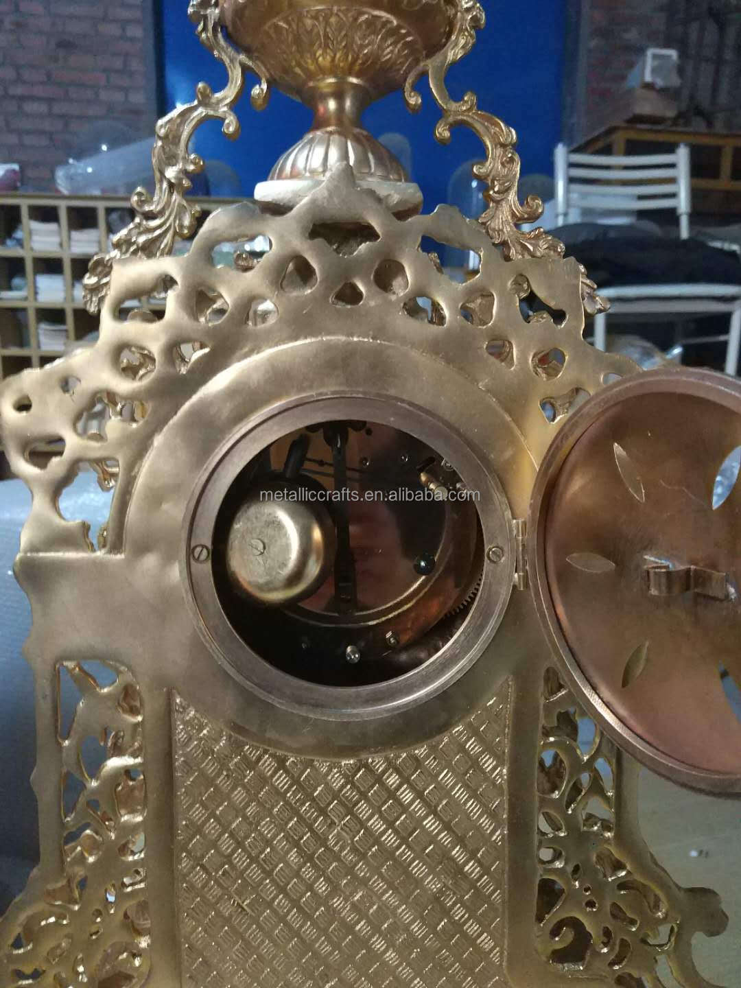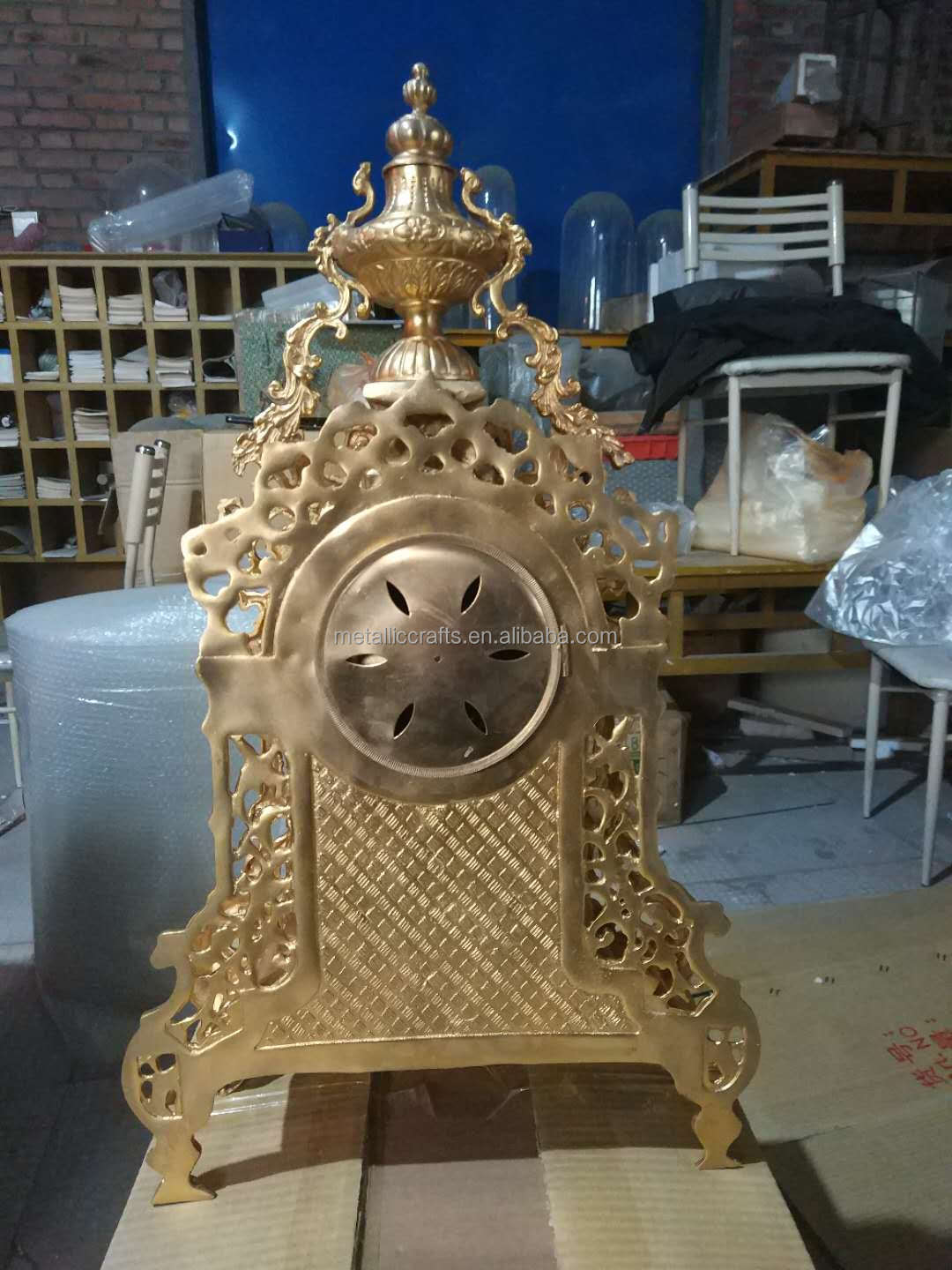 (24K Gilt) Antique Classical Cast Brass Mechanical Movement Vintage Three Angles Sitting on the Table Clock