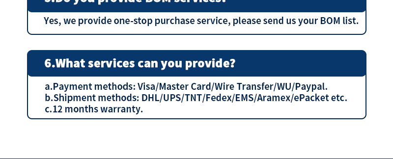 | Delivery methods: | DHL\UPS\Fedex\EMS\Hong Kong Post | payment terms: | L/C, Western Union, D/P, D/A, T/T |