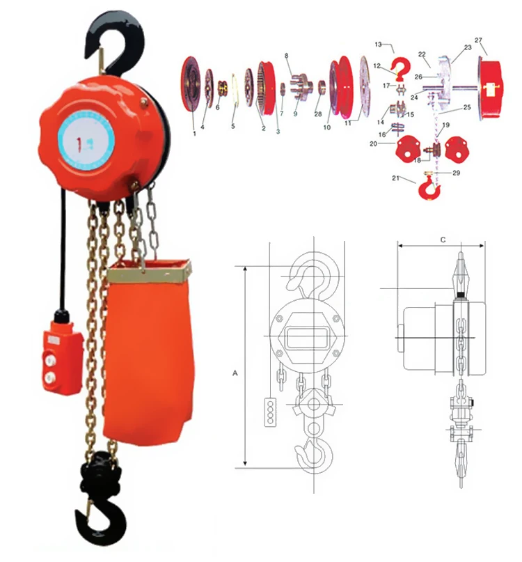 | Main electrical parts: | Chain ,hook; | Color: | Yellow; |