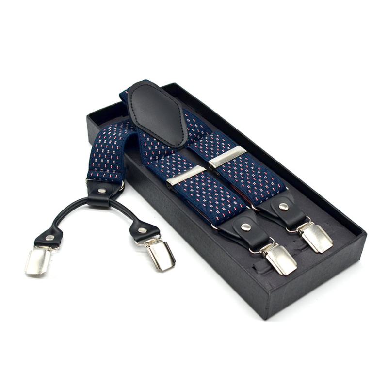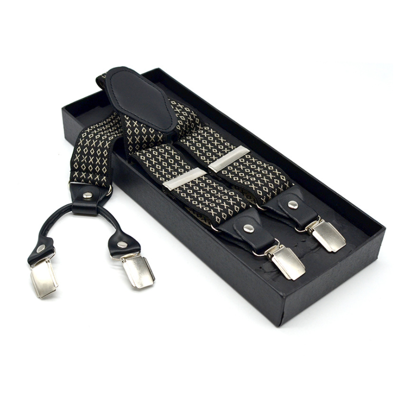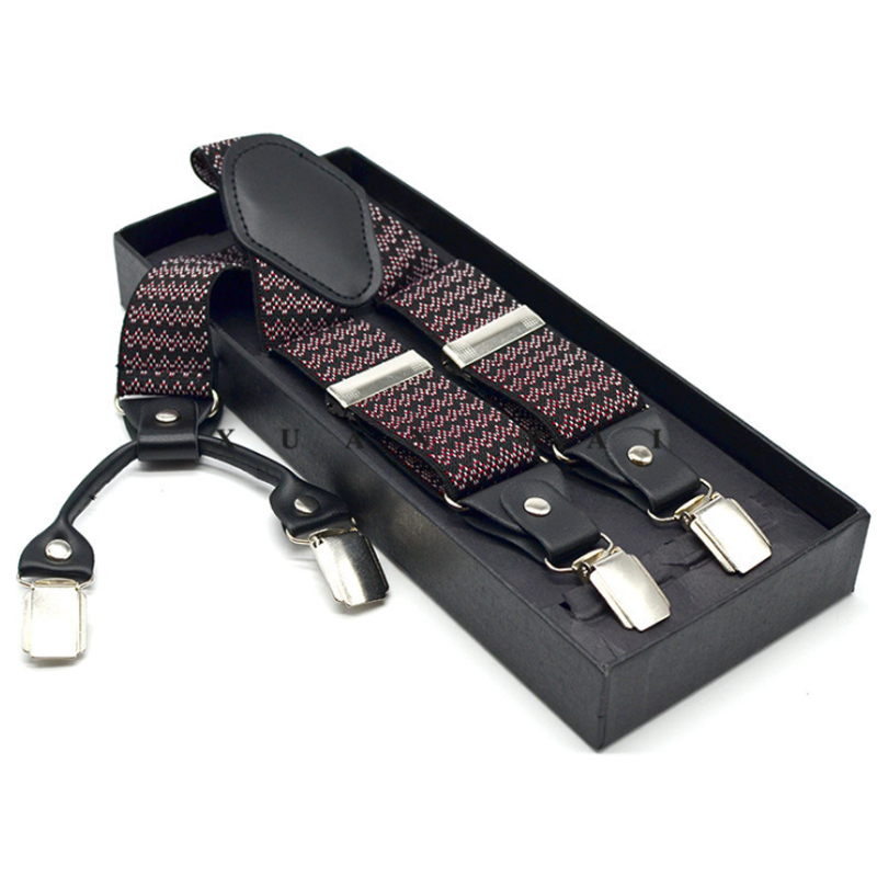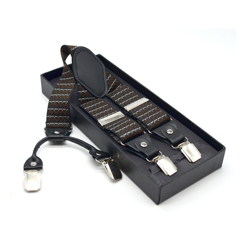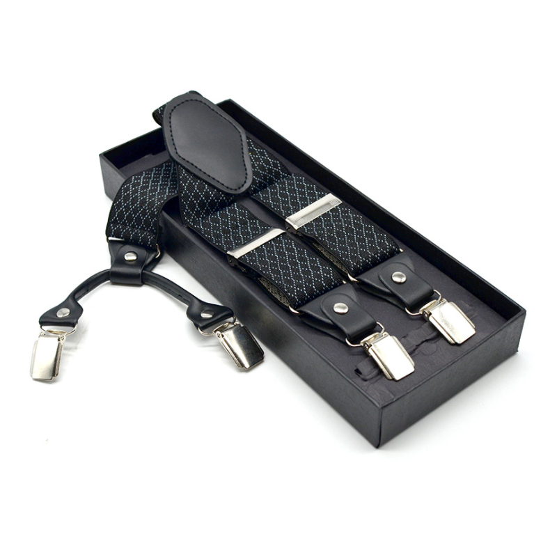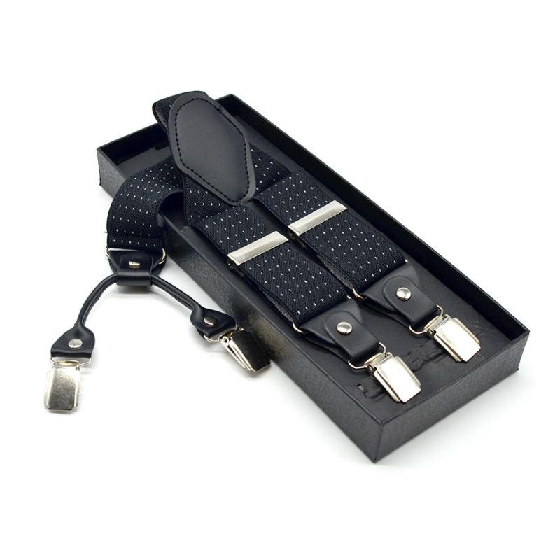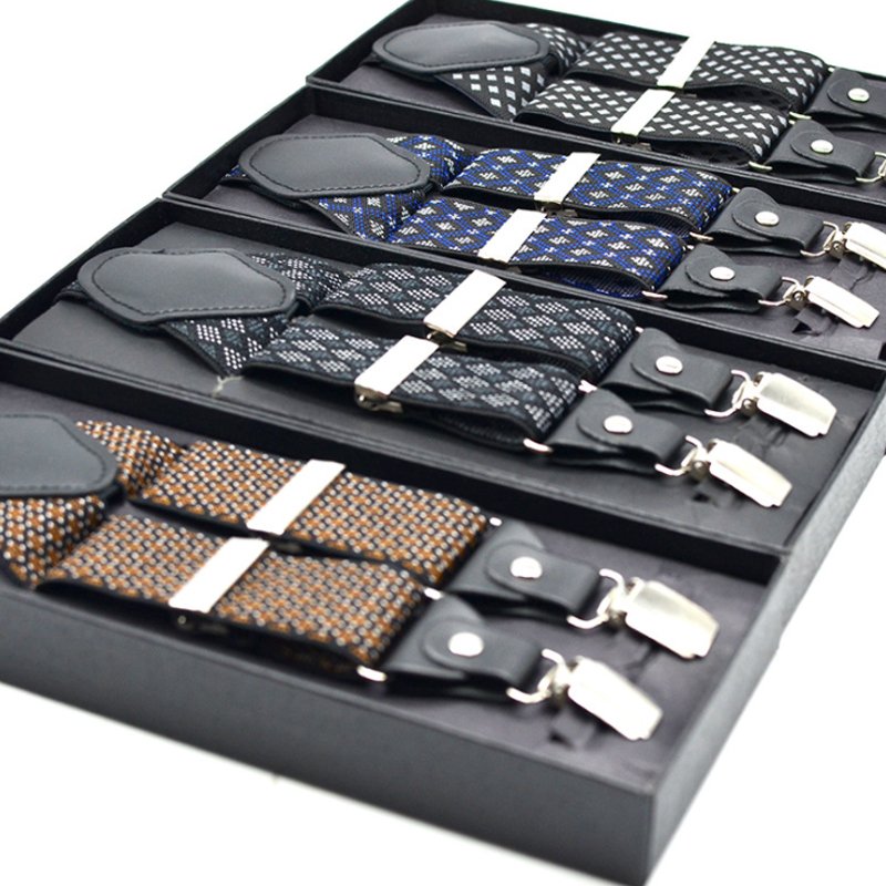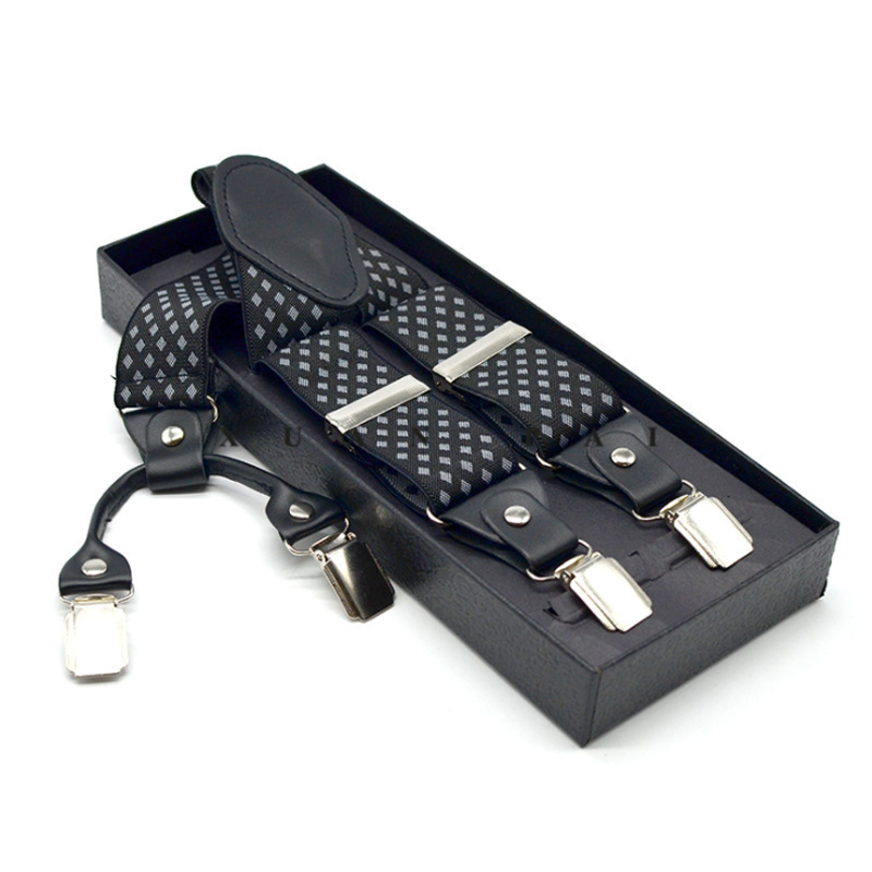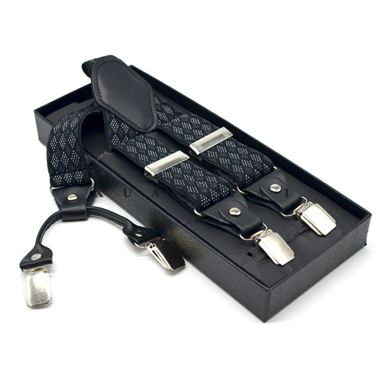 3.5cm Wide Elastic Suspender Men's Suspender Leather Alloy Suspender Men's Casual Suspender Belt Box Christmas Gift