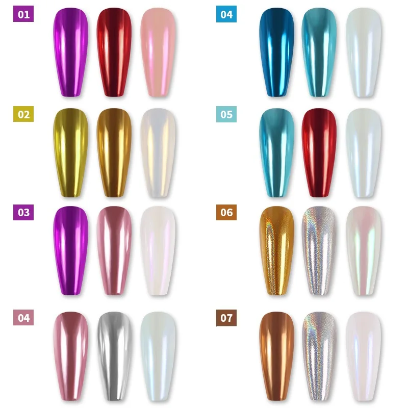 3 Colors Nail Solid Magic Mirror Powder Japanese Super Bright Laser Titanium Gold Powder Glitter Aurora Dust Chrome Pigment