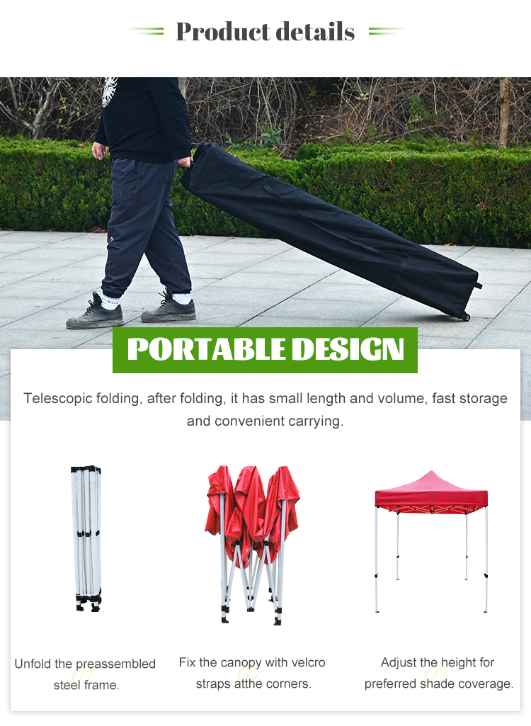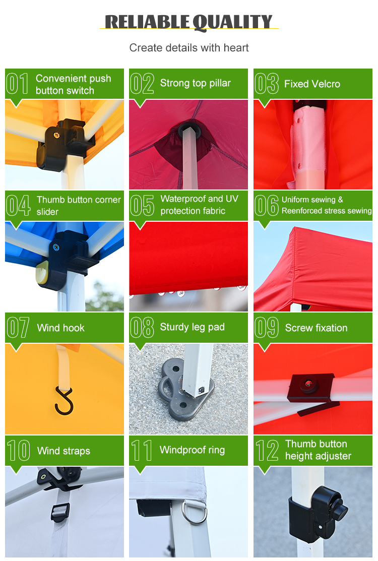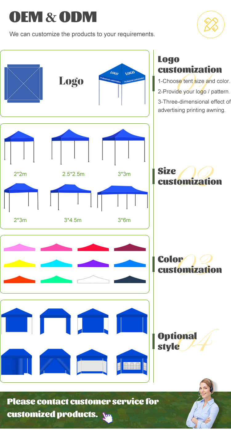 full side wall/half side wall/ Side walls with windows or zippered doors Nails/wind rope/printed logo |