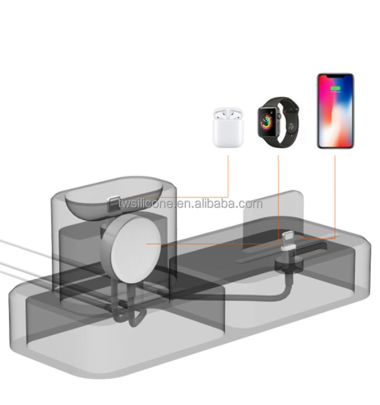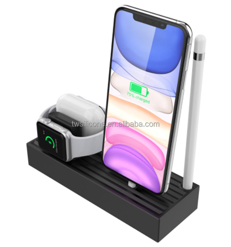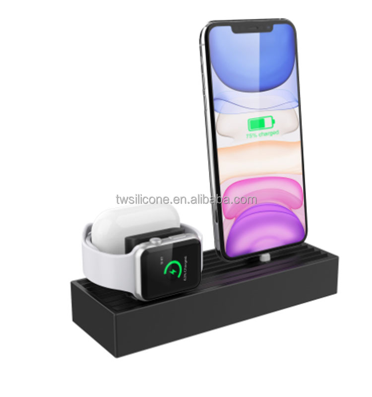 3-in-1 mobile phone, watch, earphone charging stand, silicone base