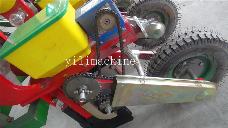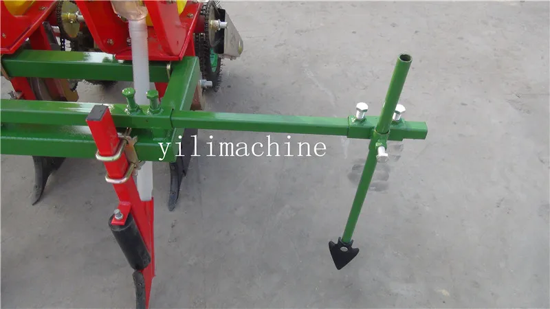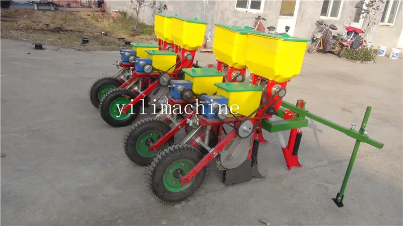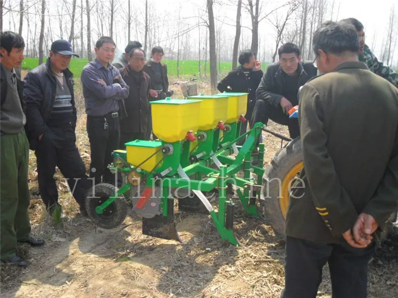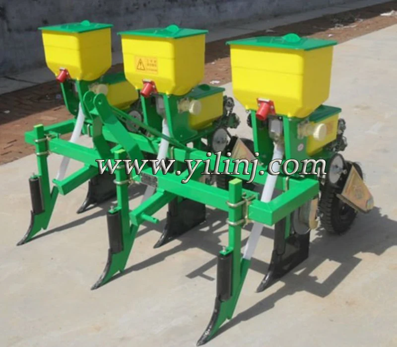The product is a fine seeder with seeding grains one by one. It applies for loosing soil, digging, applying fertilizer, covering and pressing in one operation. Sowing by weight, no damage to seeds. High precise seeds clearance, evenly sowing stale, seeds saving and less thin out seeding. Adopt “zero speed”, equal potential energy, low position feeding sturdy, seedling spacing is even. Mainly for sowing corn, can also sowing bean, cotton seeds, peanut and sunflower seeds. The machine can spread the basis fertilizer during planting, and can complete the suppression at the same time. Feed outlet is driven by gear. There is an anti-reverse mechanism at the inside of driving gear to avoid troubles arising from machine reverse turning. Seeds clearance is convenient and thoroughly. Characteristics :narrow trenching, moisture, and the fertilizers front, side spreading is spreading is suitable the machine can match a wide range of tractors.