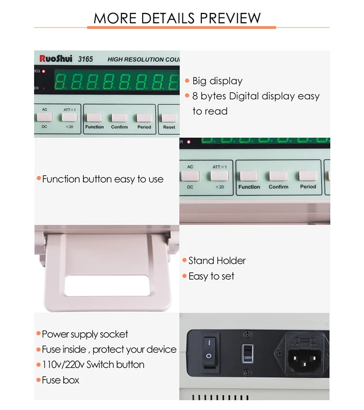 | Power supply: | AC 220V/110V 50Hz/60Hz; | Type: | Benchtop High Resolution Frequency Counter; |