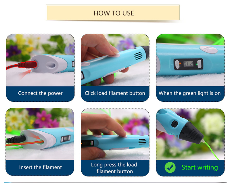 3D DIY pen with 3D printer Drawing pen Best 3D printing for kids with ABS filament 1.75 mm Birthday gift for Christmas