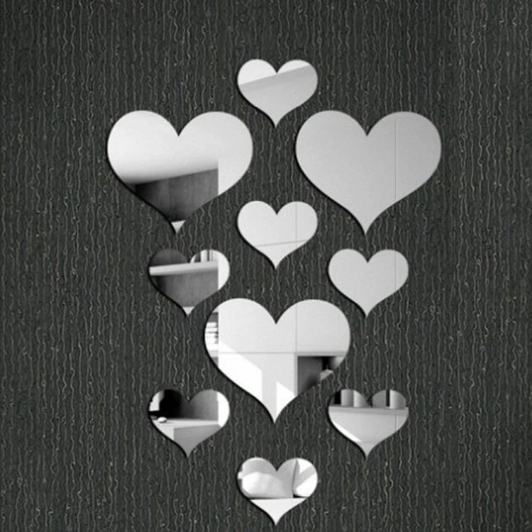 3D acrylic heart-shaped mirror wall sticker combination creative living room background wall sticker