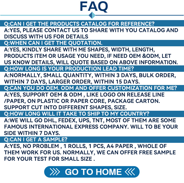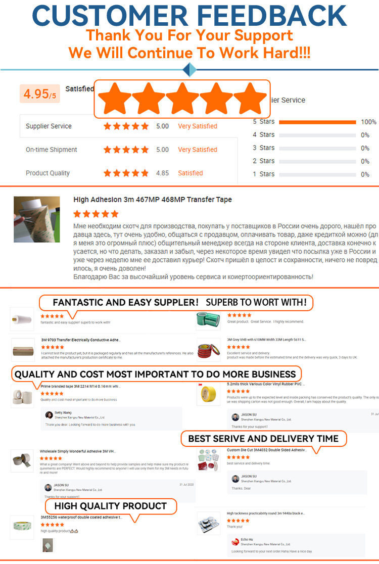 | customer service | Custom Color/Custom Thickness/Custom Width/Custom Die Cutting/Custom Logo/Custom Packaging |