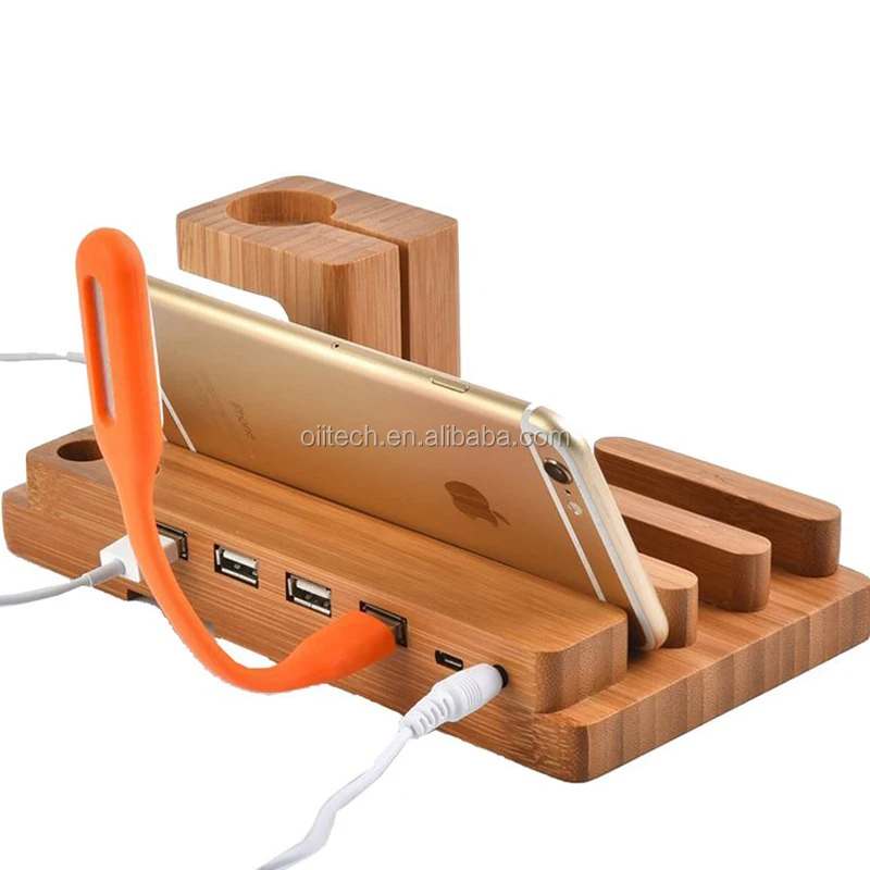 4 Ports Wooden Charging Dock Station Holder Bamboo Charger Stand Bracket Docking Holder Charger for mobile phone