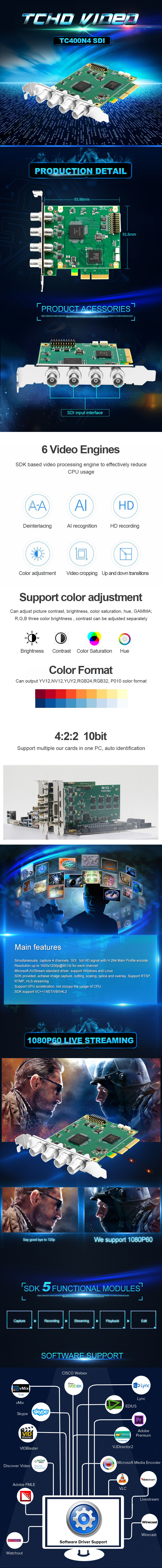 TC400N4SDIIt has 4 SDI inputs, supports 1080p/720p/480p/480i, 1080i full HD full-screen real-time preview and capture without distortion, and can be connected to digital TV set-top boxes, MOD, BD Blu-ray players, HDV digital cameras, Xbox and PS3, etc. You can connect another PC display card to record directly.