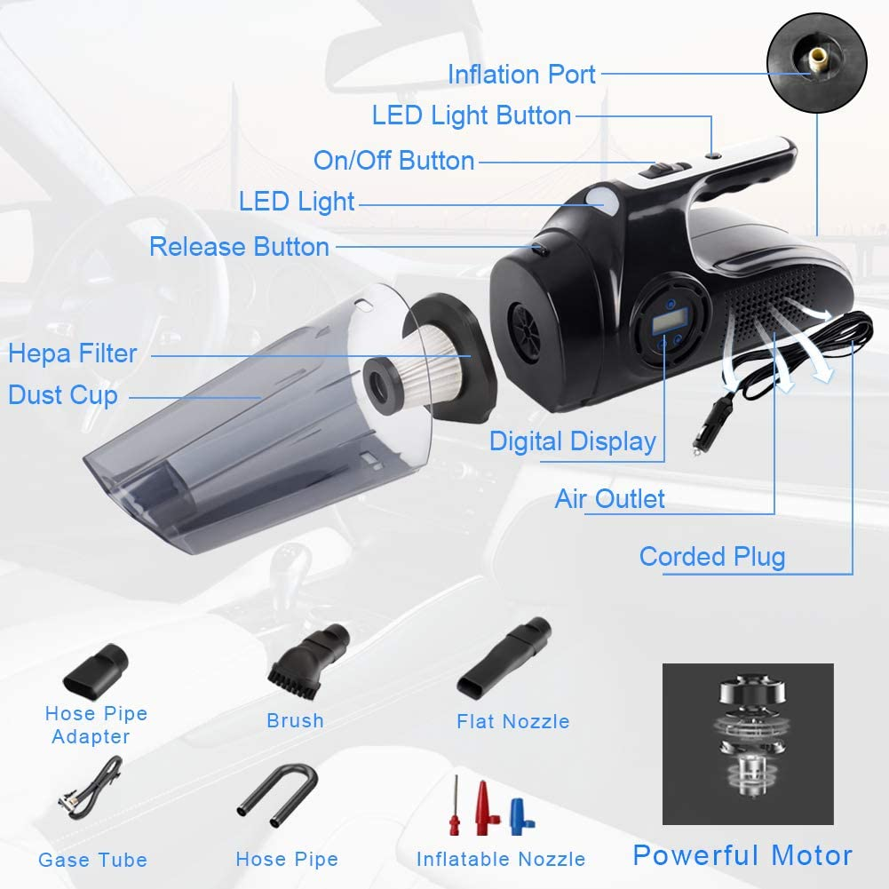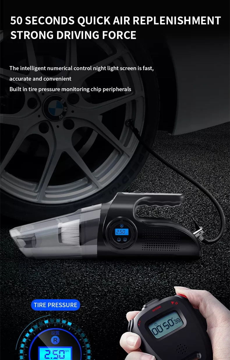 4 in 1 Wireless Car Vacuum Cleaner Air Pump 120W Car Tire Air Pump Air Compressor Wet and Dry Handheld Vacuum Cleaner