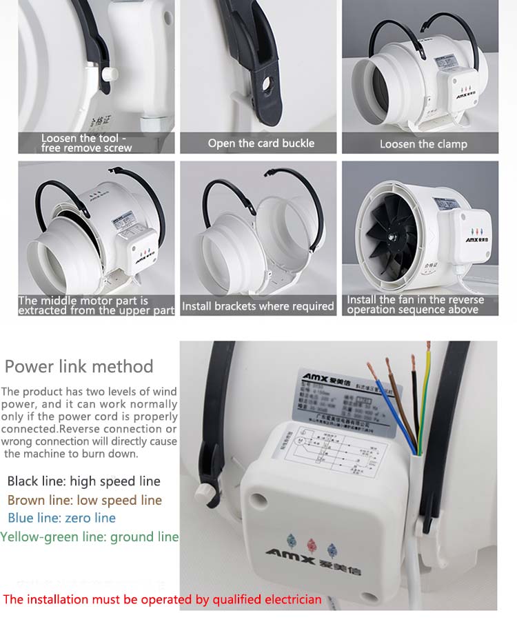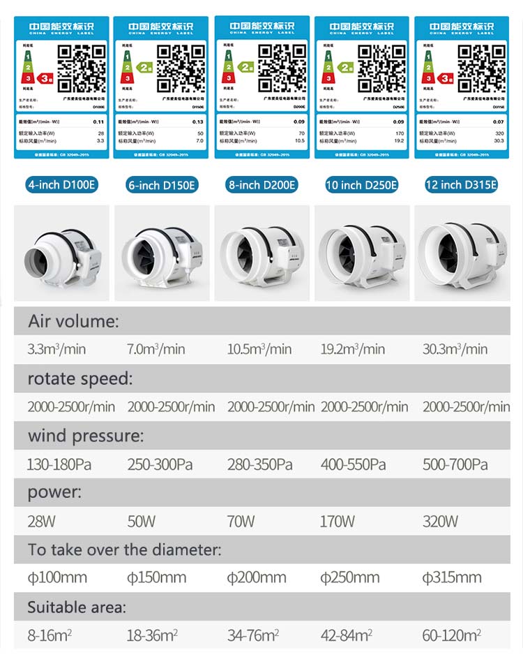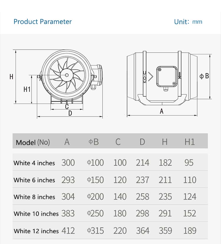 Quality performance: Mixed flow blade design, large wind pressure, large air volume and high efficiency;Unique buckle design, easy to disassemble, seal and fasten.