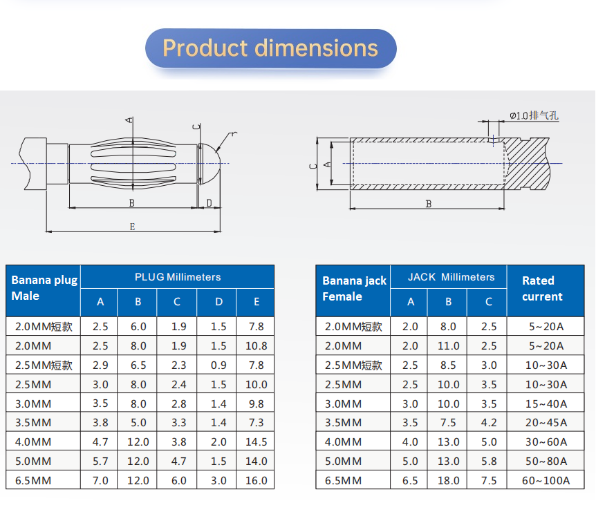 | Surface treatment: | Nickel plated | describe: | 4mm banana plug |