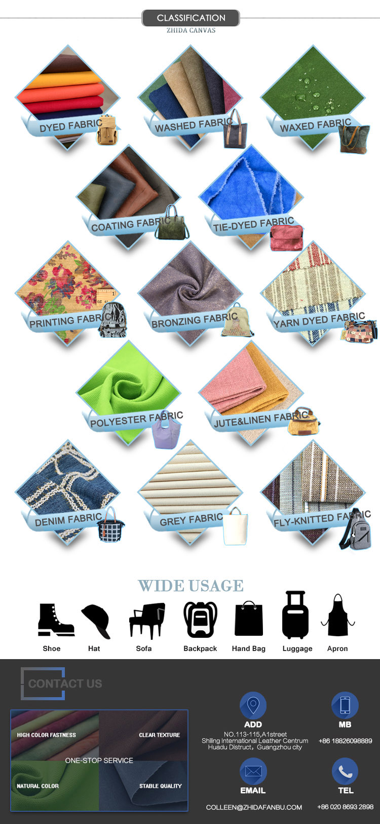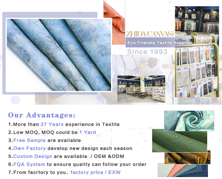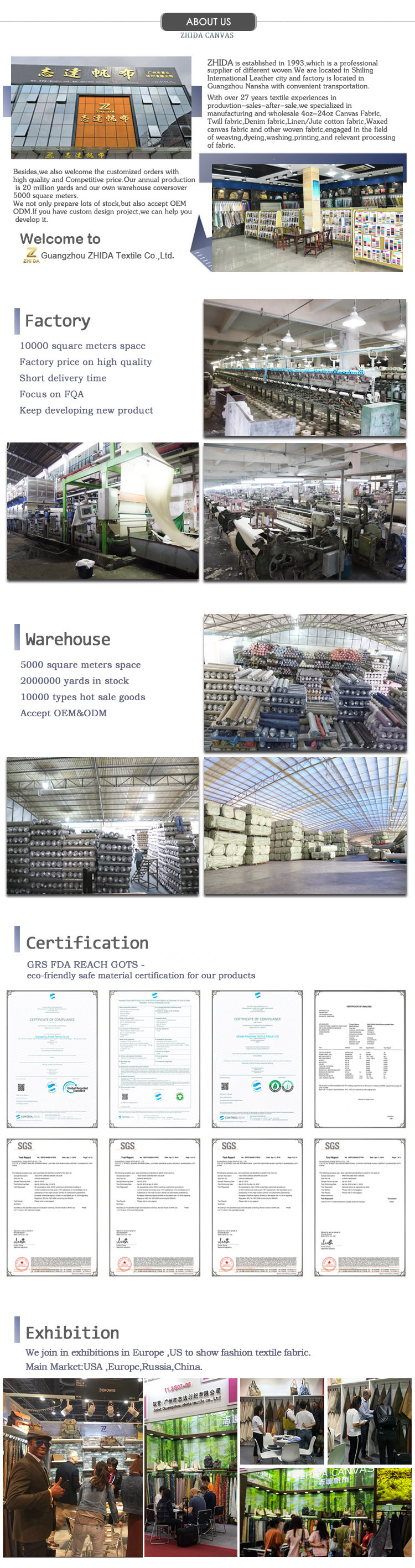 We have own factory and more than 27 years experience, 1000 machines ensure short lead time in different processes : dyed,washed,printing,waxed,coating,tie-dyed,