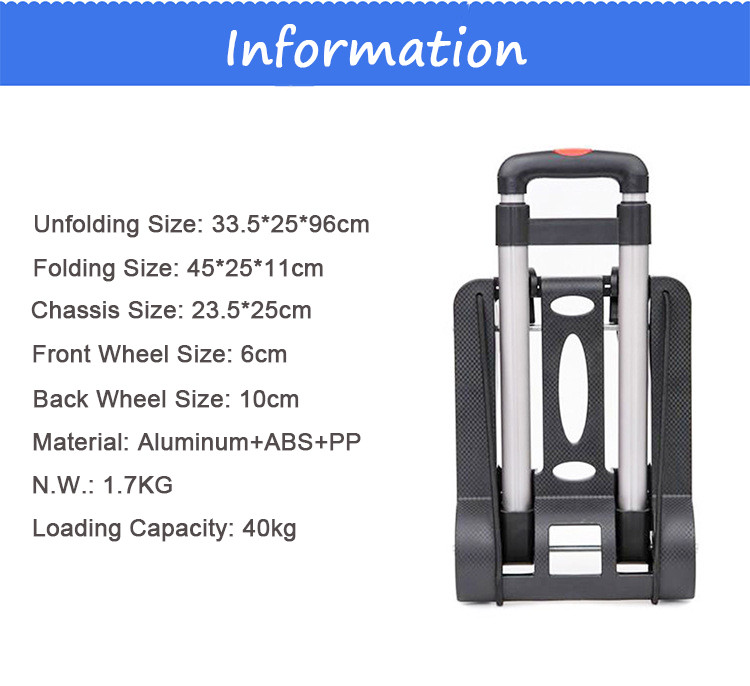 | 40kg Loading Folding Portable Folding Trolley Luggage Cart Shopping Travel Hotel |