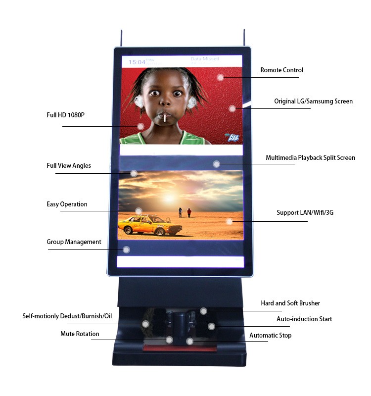 47 inch WIFI 3G scrolling text advertisement shoe shine machine